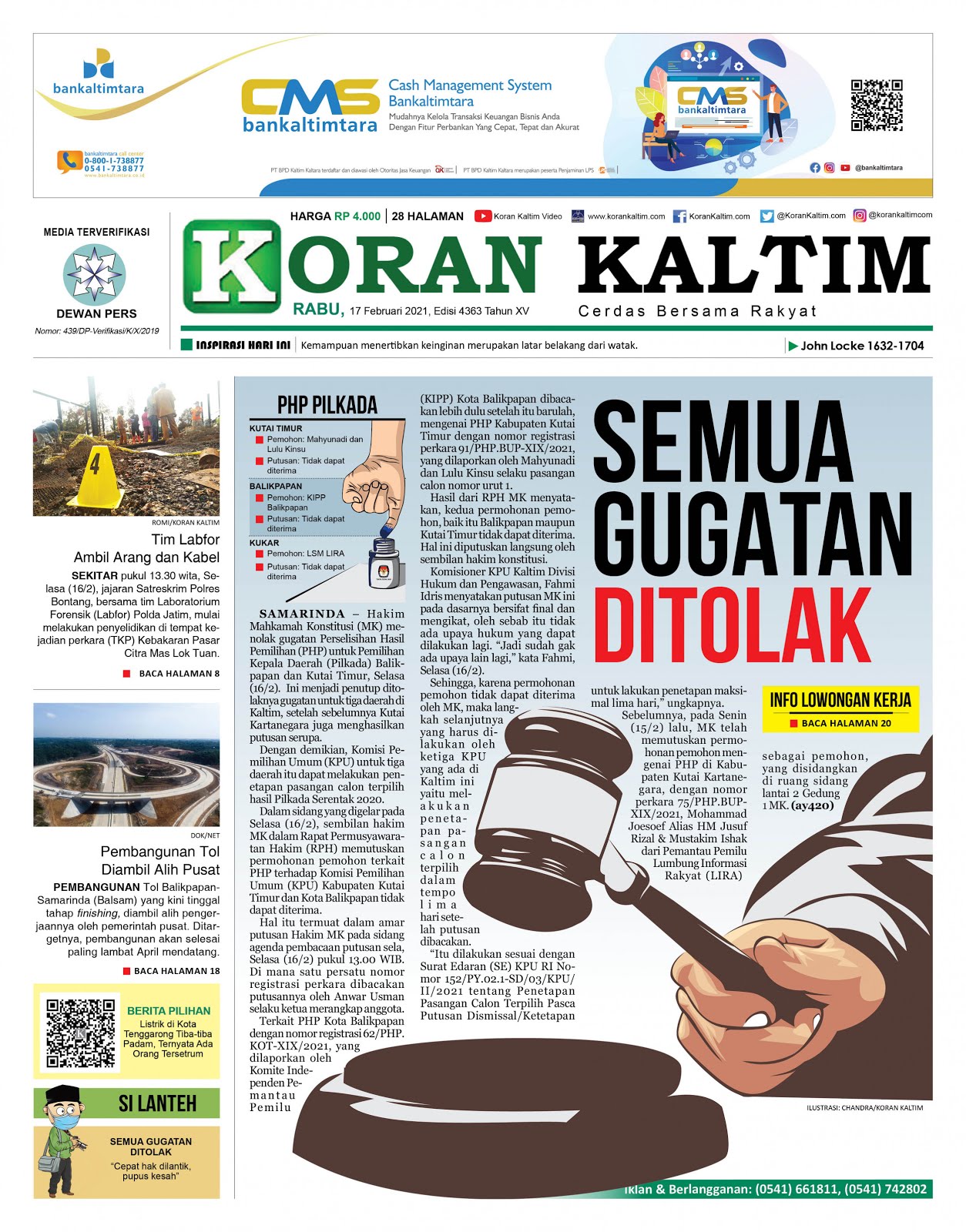 Ini adalah cover e-koran korankaltim yang terbit pada rabu 17-02-2021.