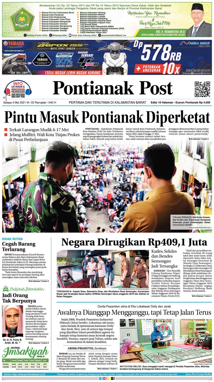 Ini adalah cover e-koran pontianakpost yang terbit pada selasa 04-05-2021.