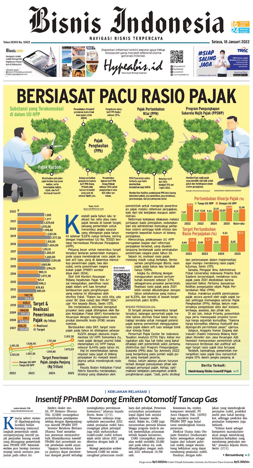 Ini adalah cover e-koran bisnisindonesia yang terbit pada selasa 18-01-2022.
