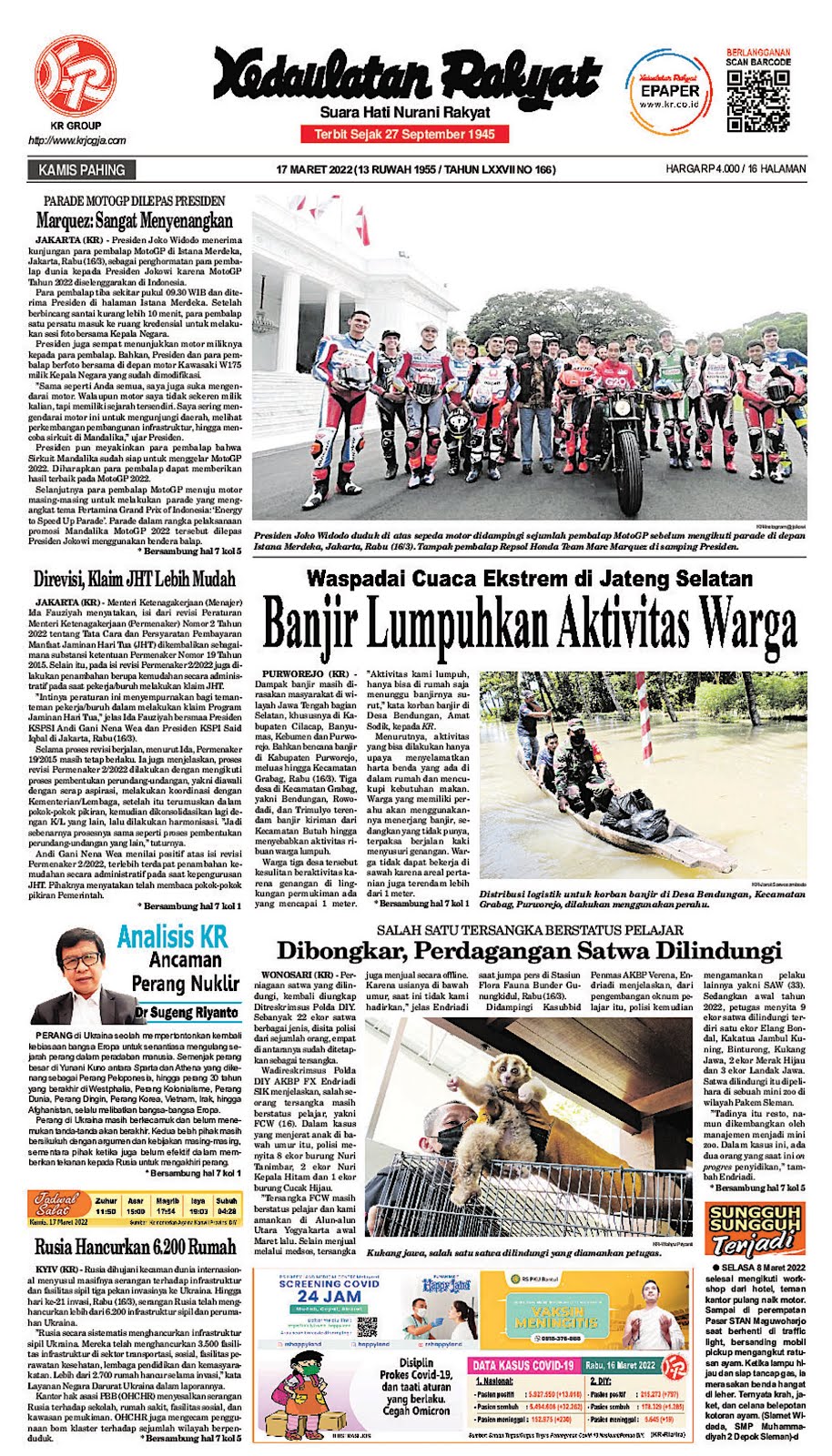 Ini adalah cover e-koran kedaulatanrakyat yang terbit pada kamis 17-03-2022.