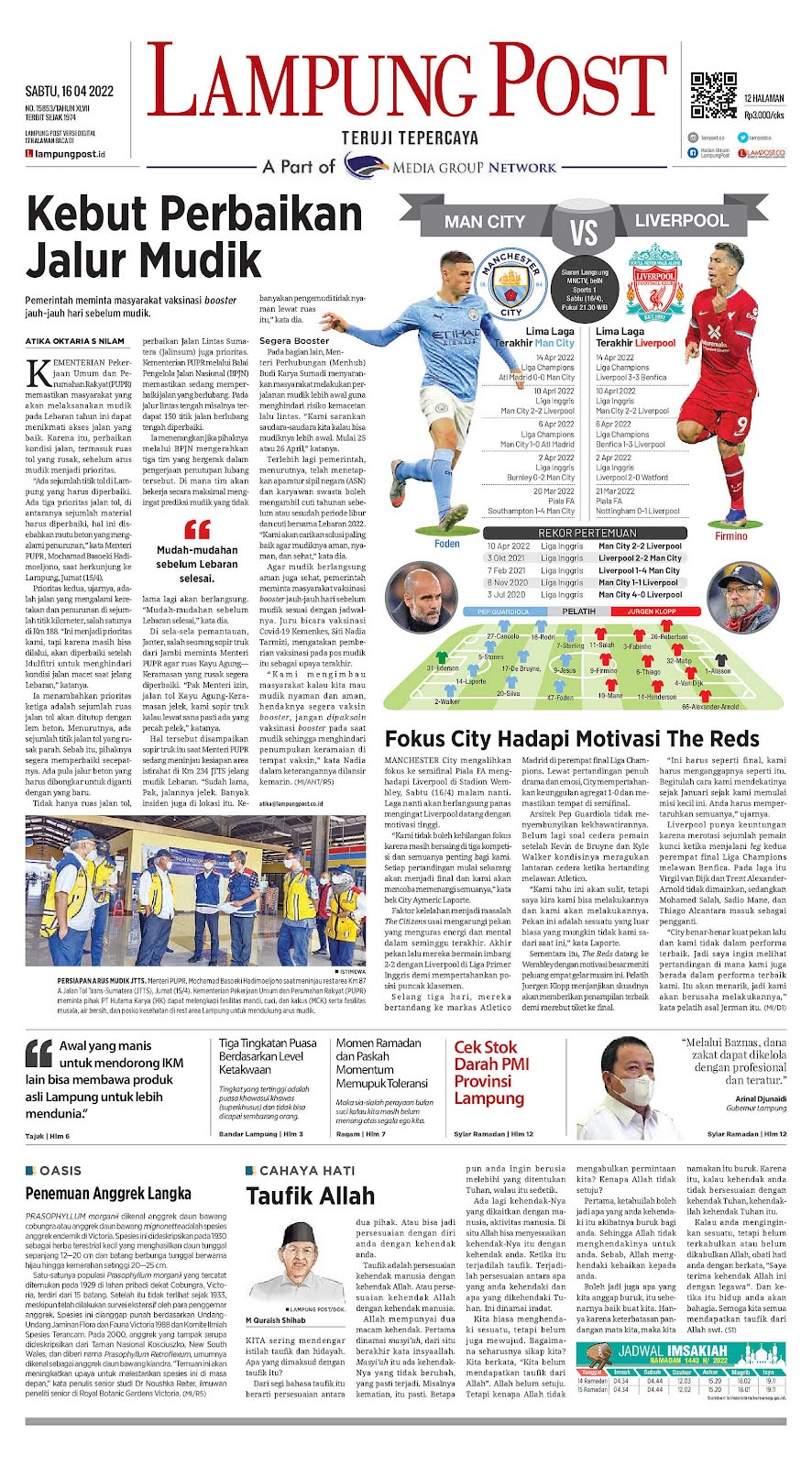 Ini adalah cover e-koran lampungpost yang terbit pada sabtu 16-04-2022.