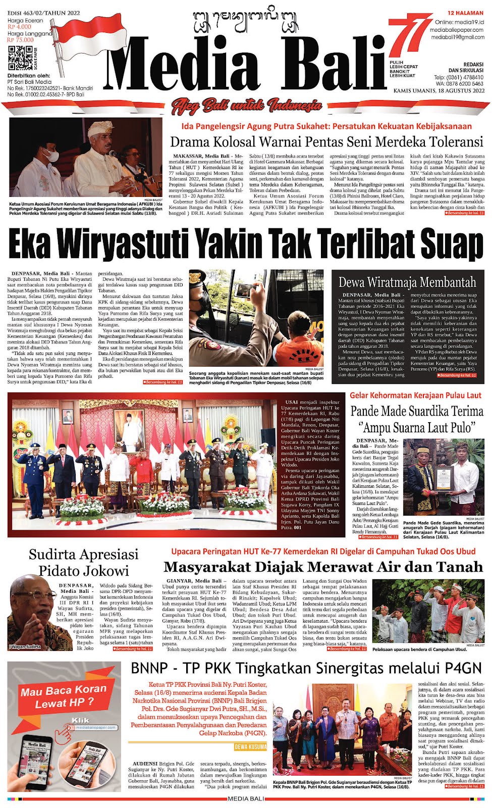 Ini adalah cover e-koran mediabali yang terbit pada kamis 18-08-2022.