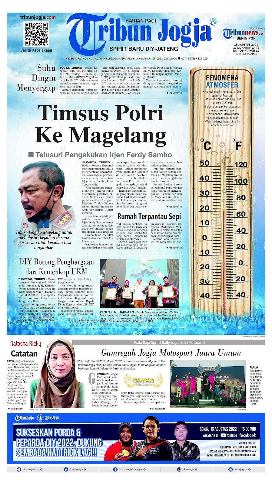 Ini adalah cover e-koran tribunjogja yang terbit pada senin 15-08-2022.