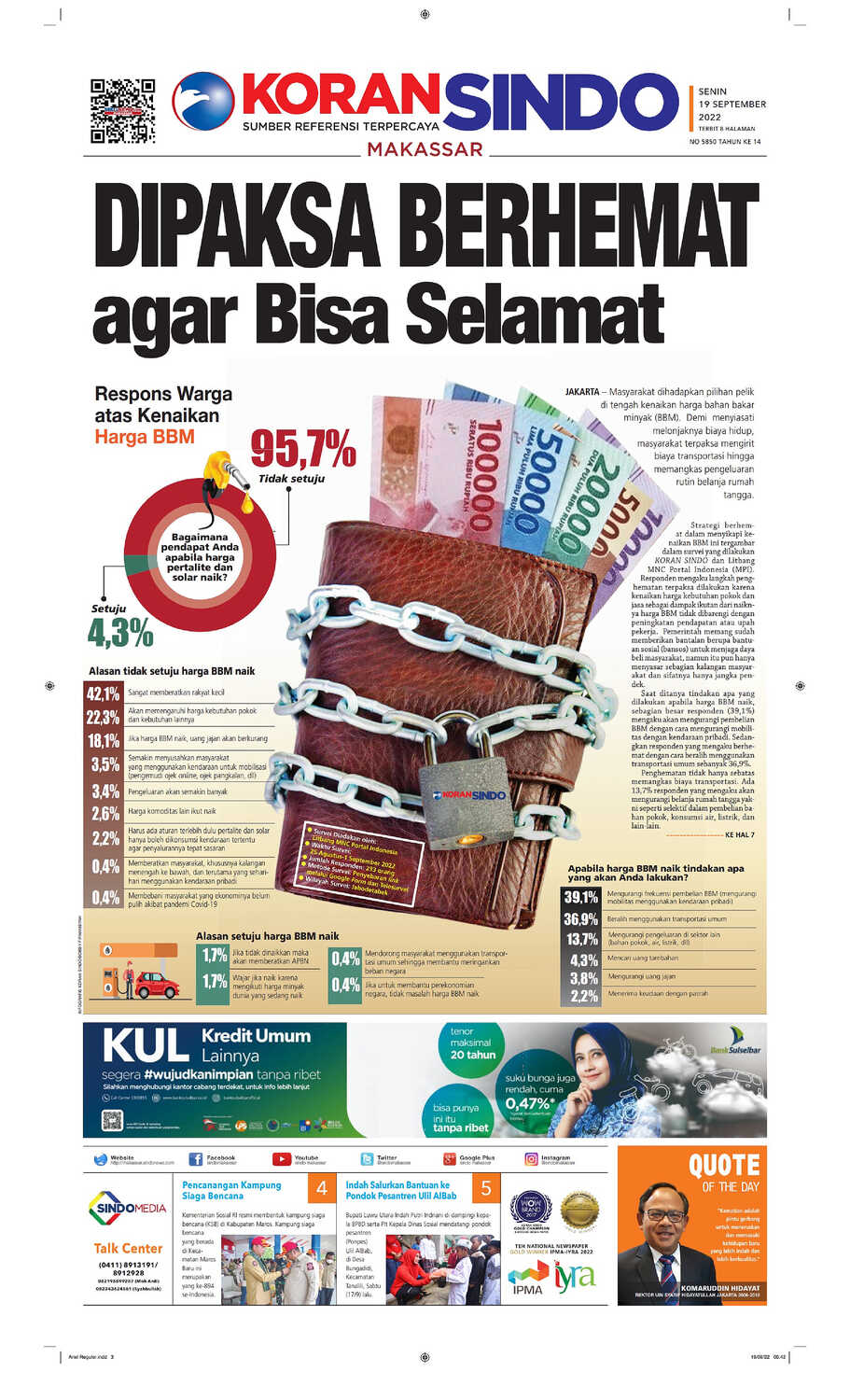 Ini adalah cover e-koran koransindomakassar yang terbit pada senin 19-09-2022.