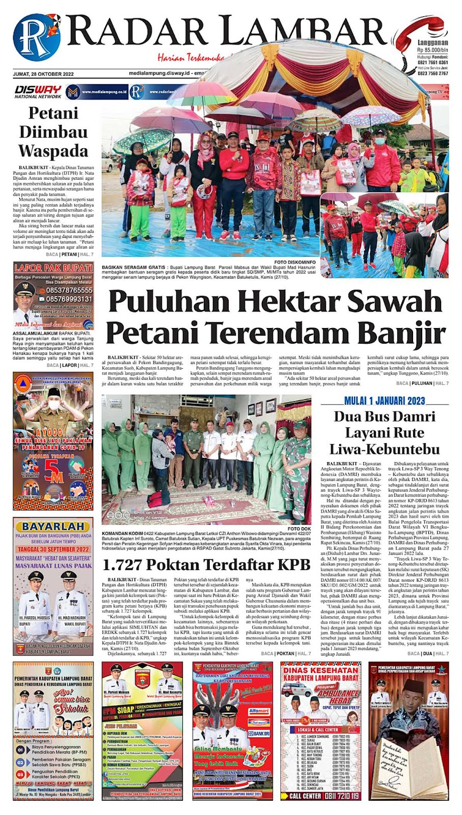 Ini adalah cover e-koran radarlambar yang terbit pada jumat 28-10-2022.