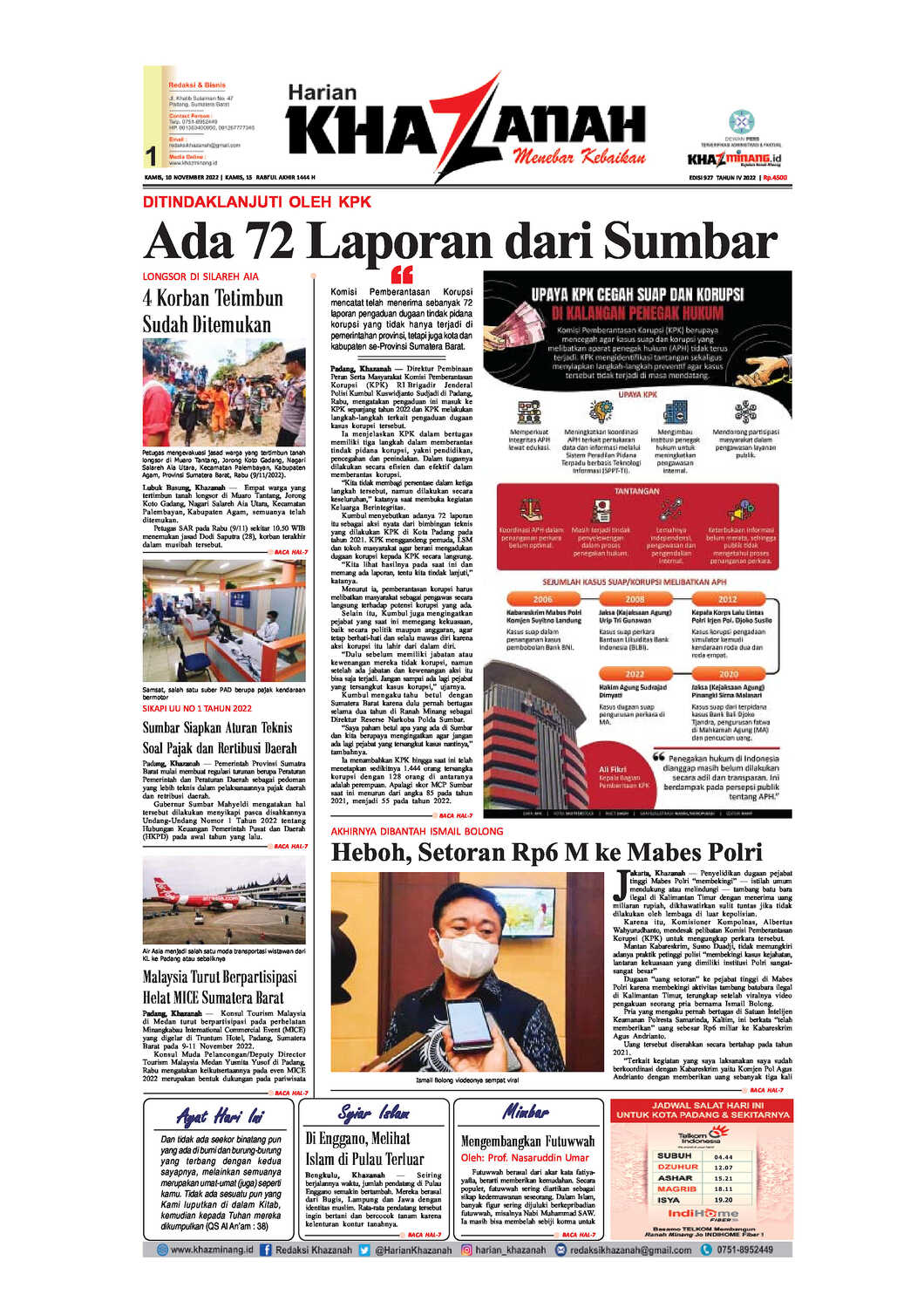 Ini adalah cover e-koran khazanah yang terbit pada kamis 10-11-2022.