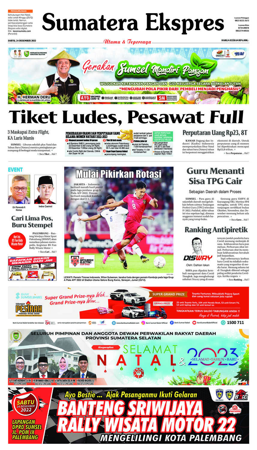 Ini adalah cover e-koran sumateraekspres yang terbit pada sabtu 24-12-2022.