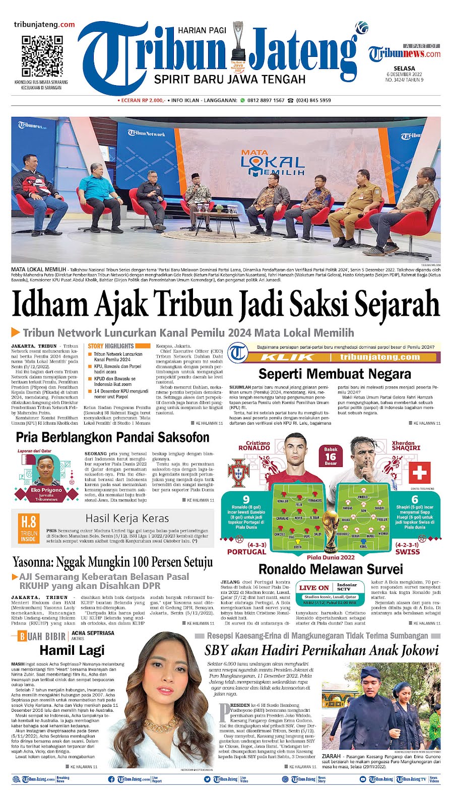 Ini adalah cover e-koran tribunjateng yang terbit pada selasa 06-12-2022.