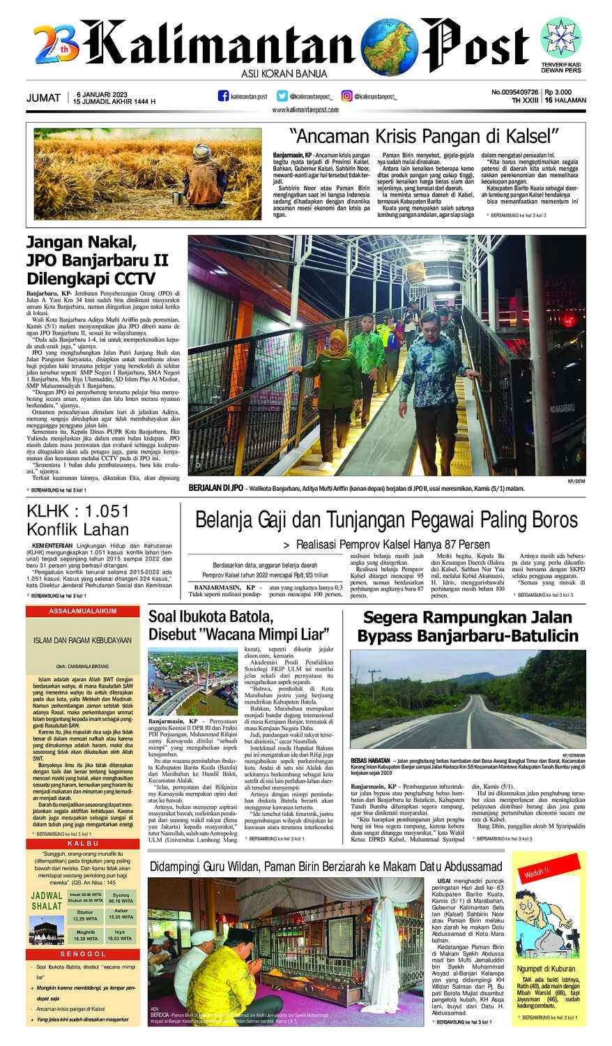 Ini adalah cover e-koran kalimantanpost yang terbit pada jumat 06-01-2023.