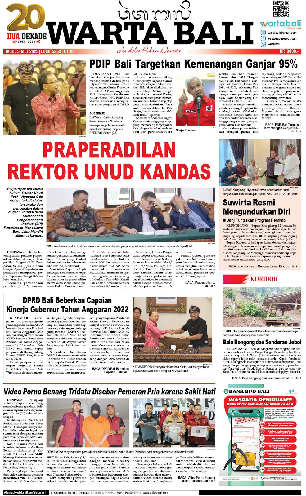 Ini adalah cover e-koran wartabali yang terbit pada rabu 03-05-2023.