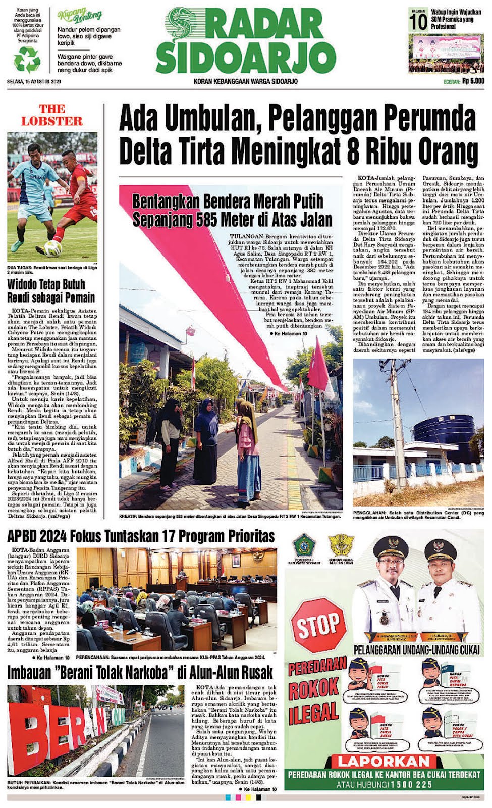 Ini adalah cover e-koran radarsidoarjo yang terbit pada selasa 15-08-2023.