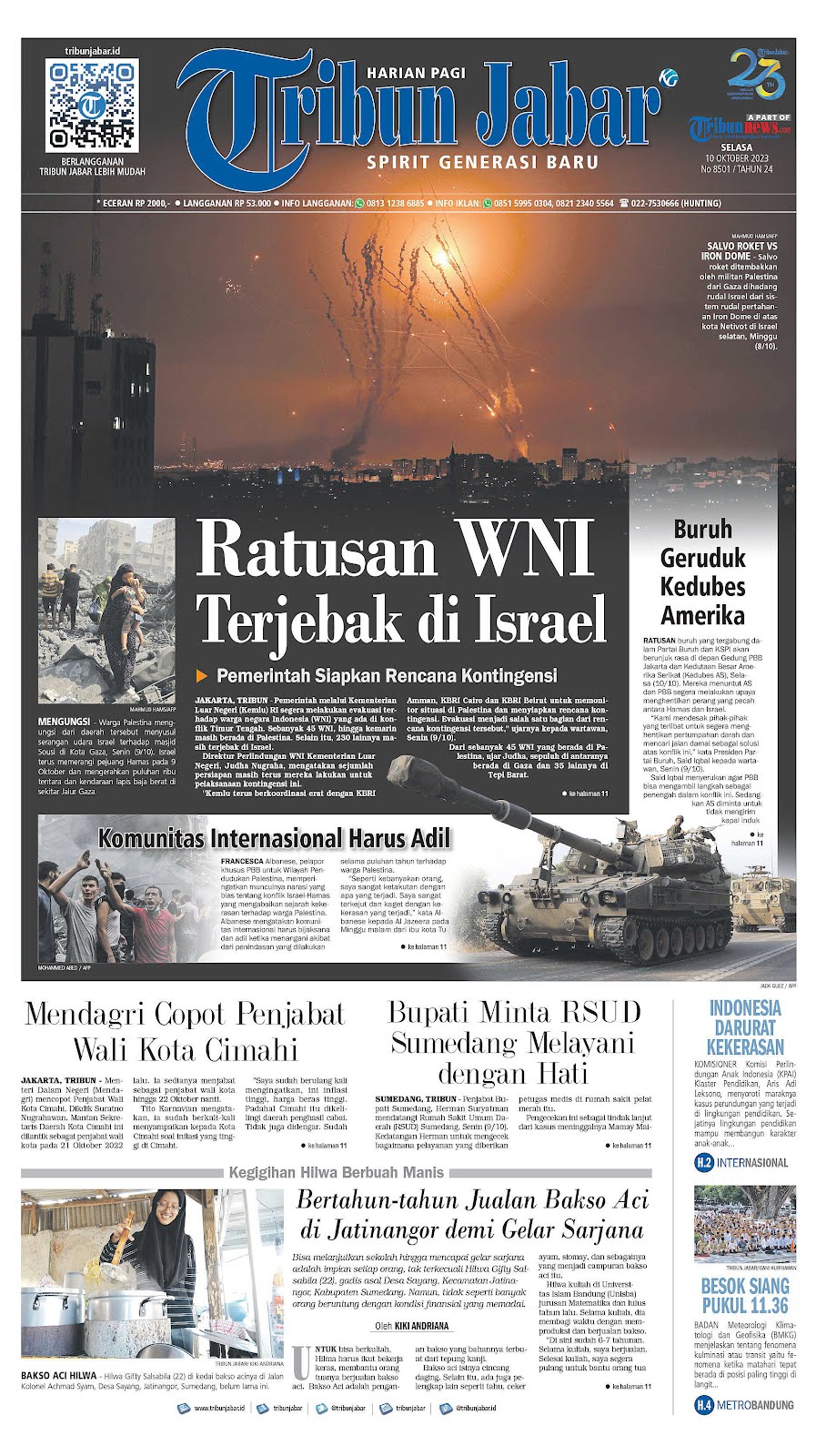 Ini adalah cover e-koran tribunjabar yang terbit pada selasa 10-10-2023.