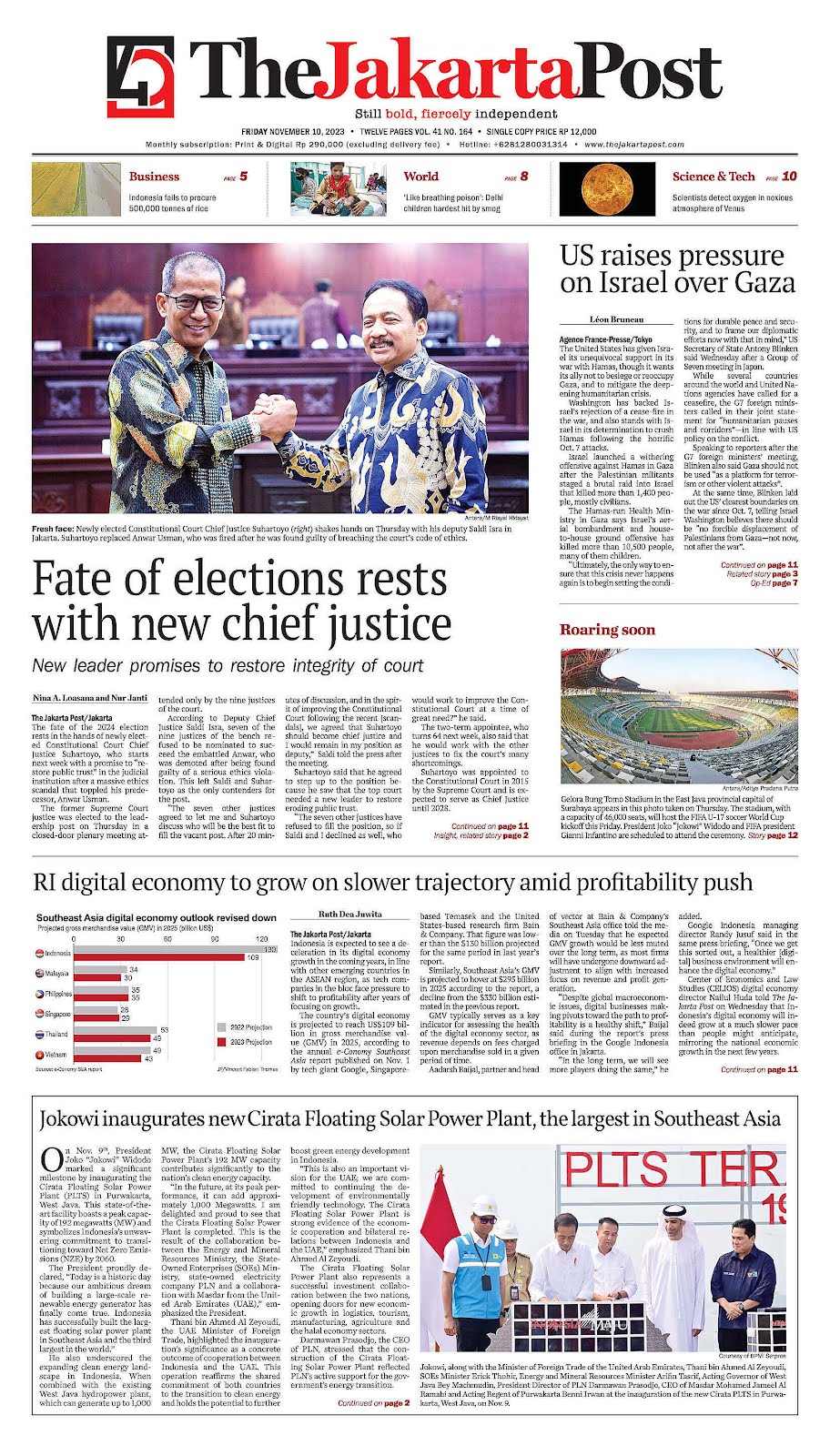 Ini adalah cover e-koran thejakartapost yang terbit pada jumat 10-11-2023.