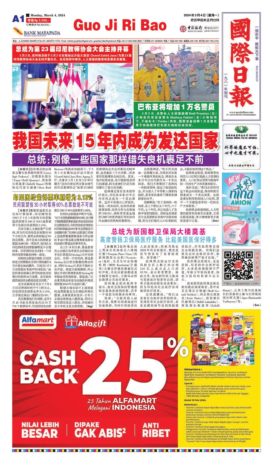 Ini adalah cover e-koran guojiribao yang terbit pada senin 04-03-2024.