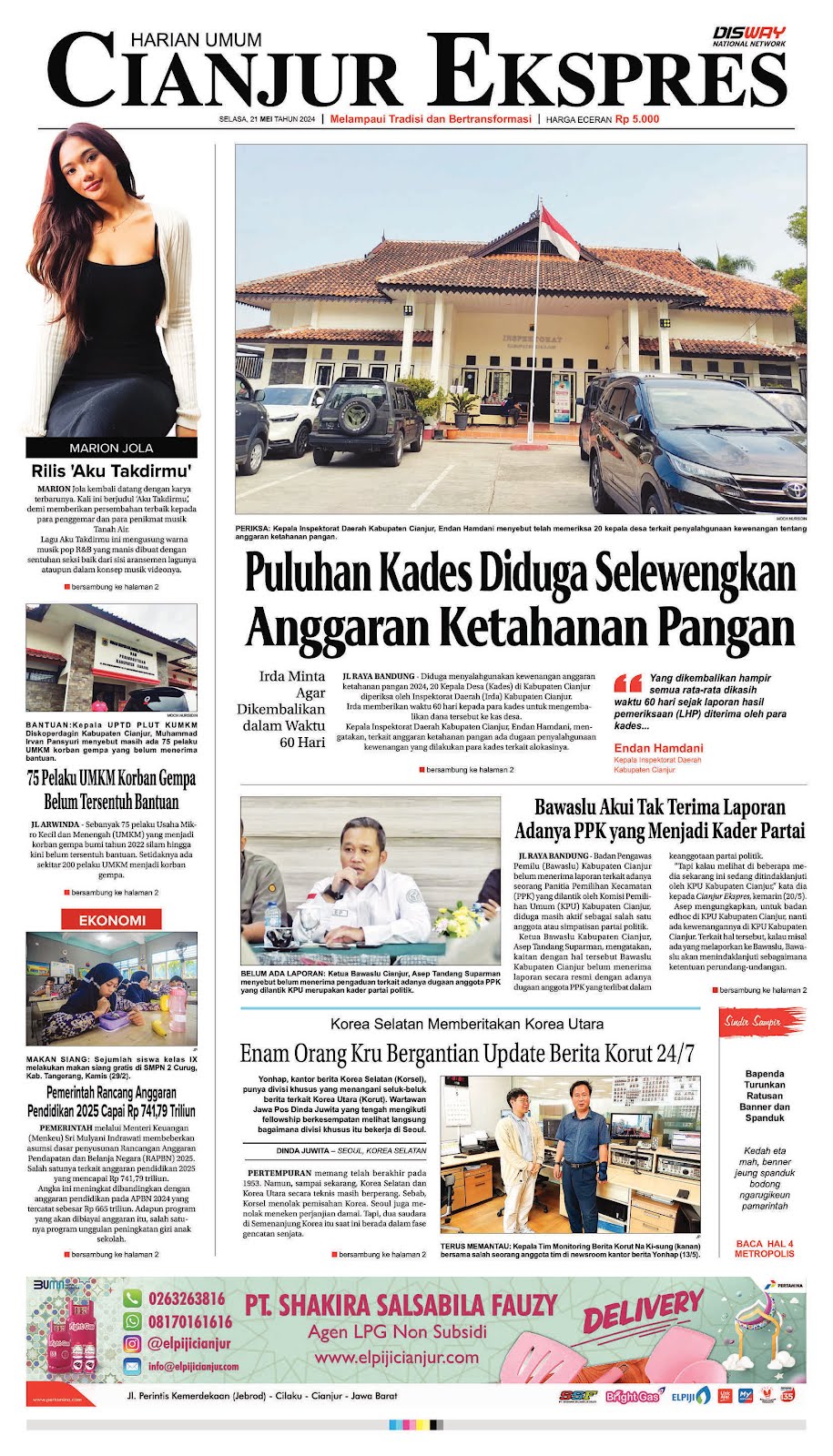 Ini adalah cover e-koran cianjurekspres yang terbit pada selasa 21-05-2024.
