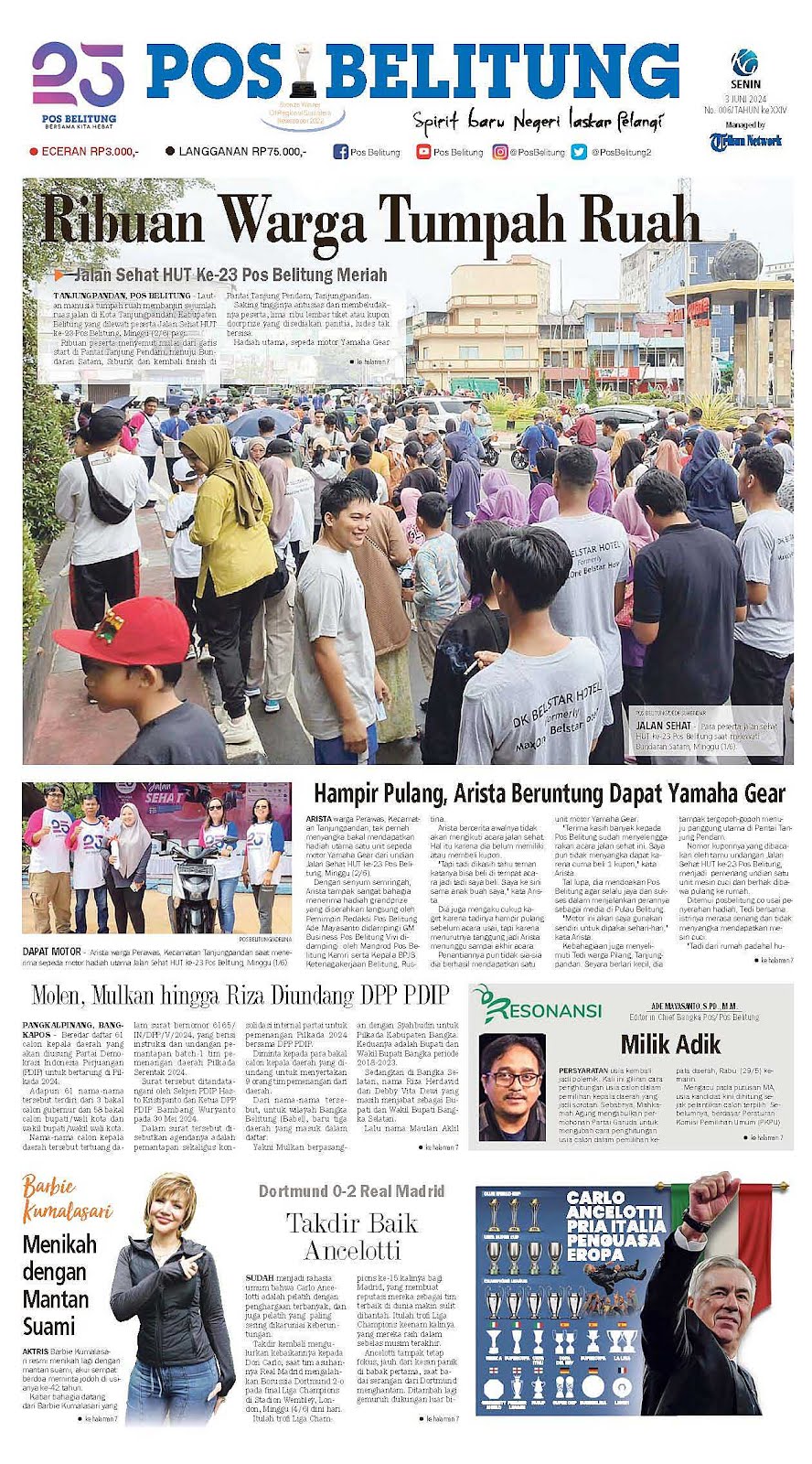 Ini adalah cover e-koran posbelitung yang terbit pada senin 03-06-2024.