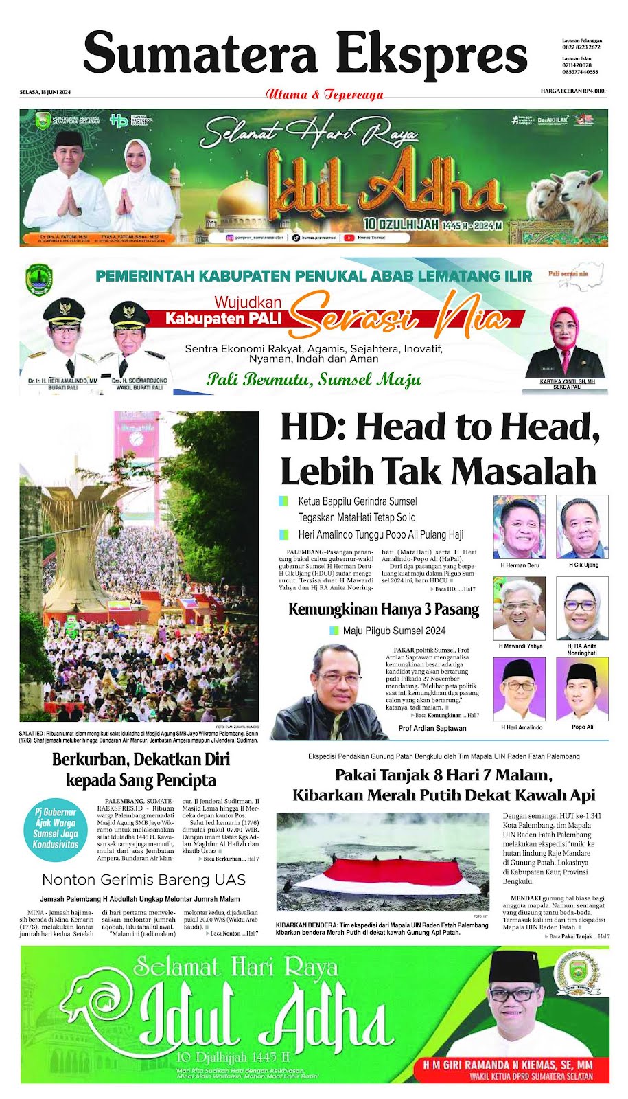Ini adalah cover e-koran sumateraekspres yang terbit pada selasa 18-06-2024.