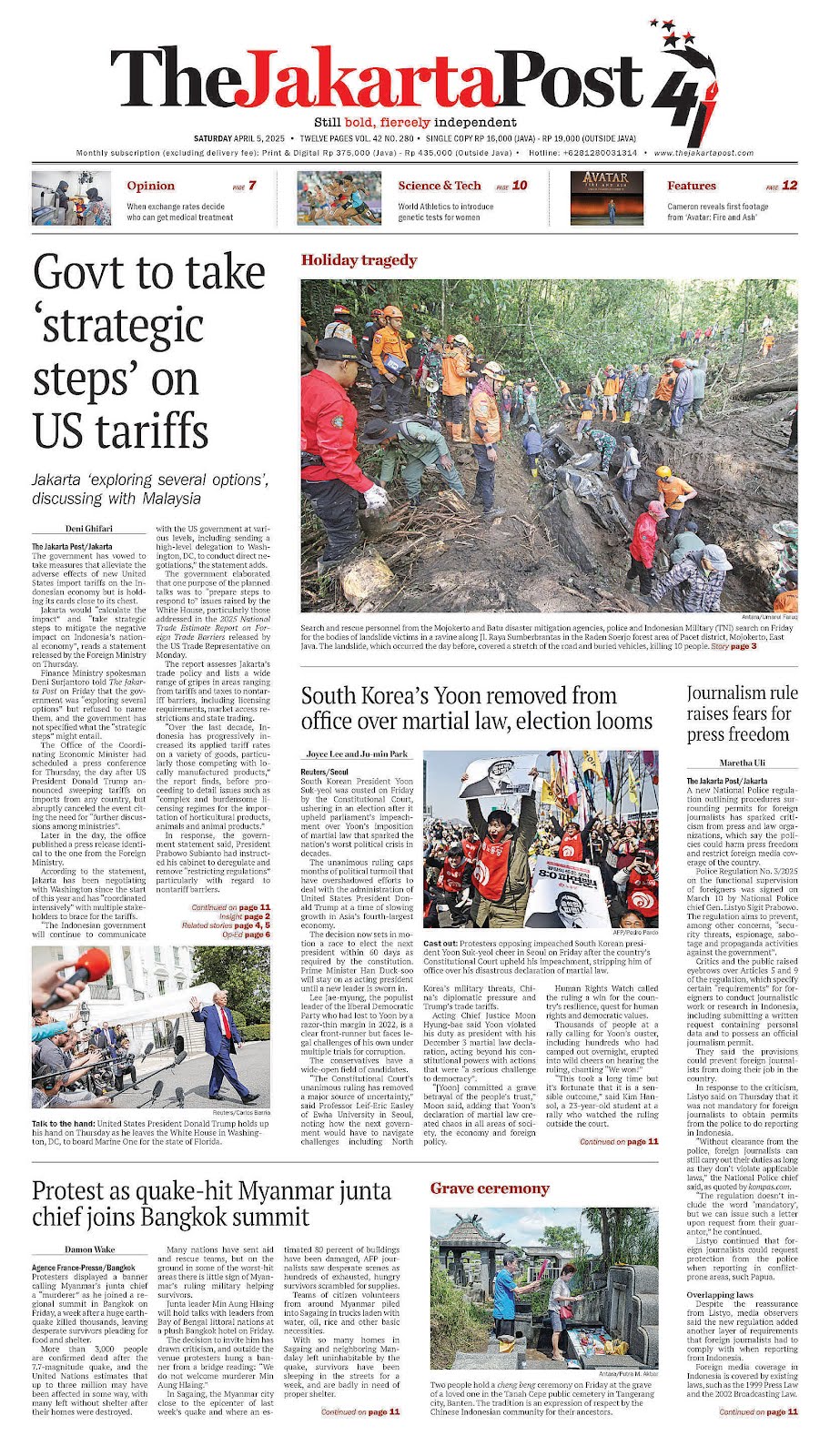 Ini adalah cover e-koran thejakartapost yang terbit pada sabtu 05-04-2025.