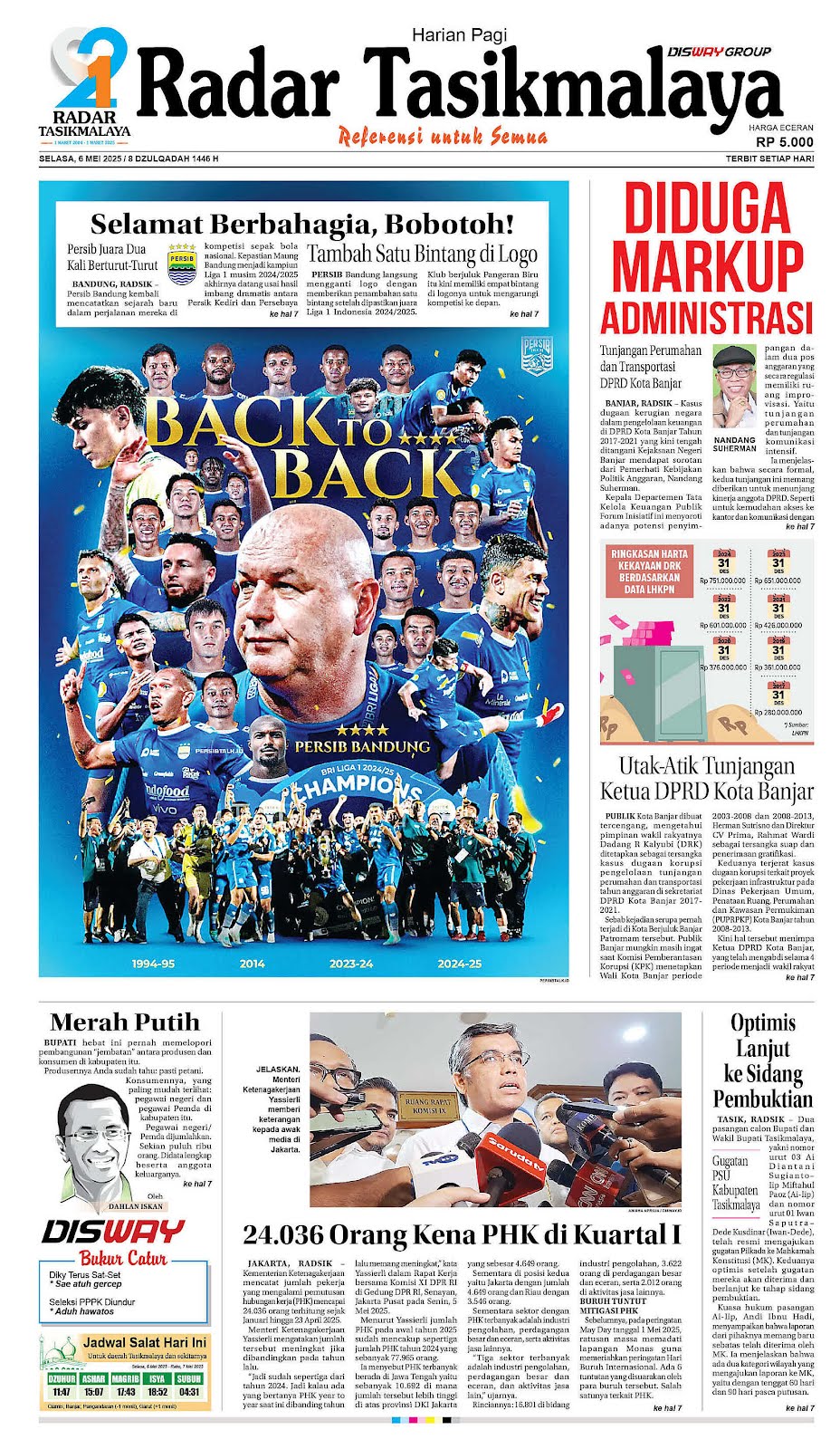 Ini adalah cover e-koran radartasikmalaya yang terbit pada selasa 06-05-2025.