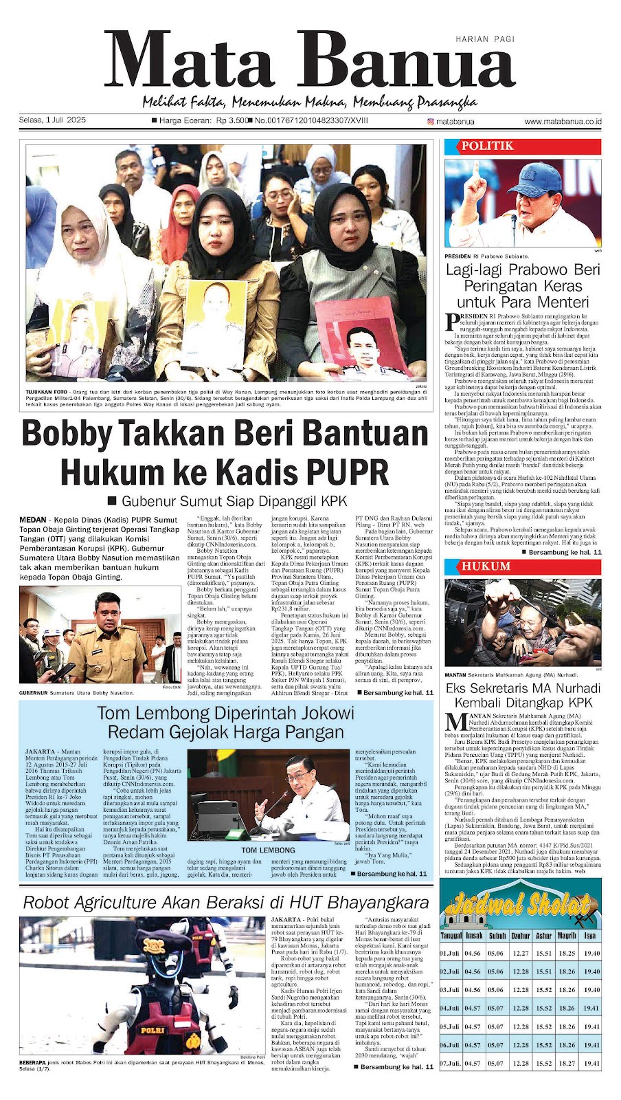 Ini adalah cover e-koran matabanua yang terbit pada selasa 01-07-2025.